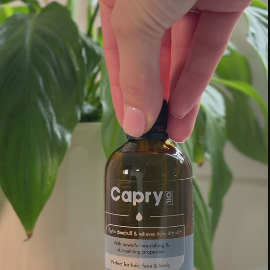 Expertly formulated to fight dandruff and relieve itchy dry skin, Capry Oil is a unique synergy of powerhouse ingredients including cosmetic-grade caprylic triglyceride (100% sourced from coconuts), calming calendula, and nourishing natural vitamin E.